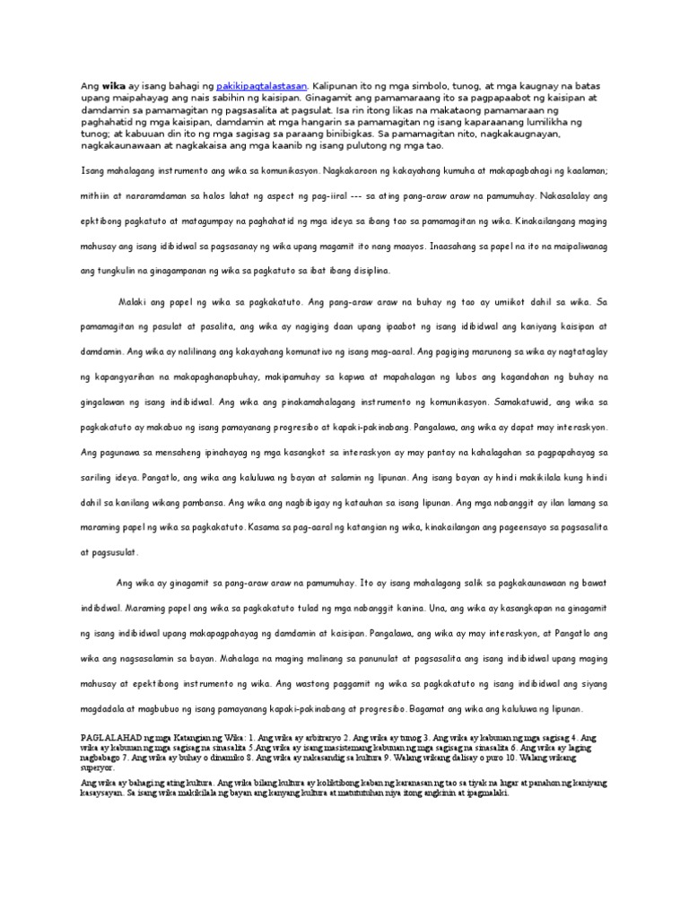 Wika Docx Kahalagahan Ng Wika Sa Pang Araw Araw Nating Buhay Tulad Nga Ng Nabanggit Sa Itaas Mahalaga Ang Wika Sapagkat Ito Ay Ang Pangunahing Course Hero