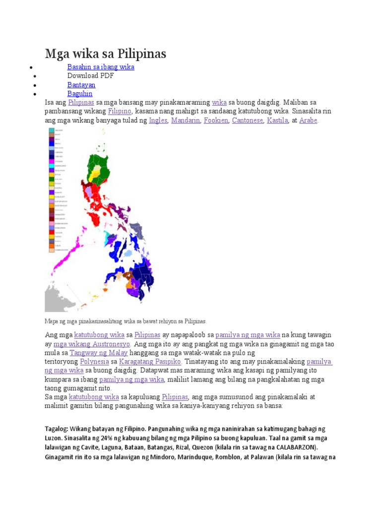 Kamis 12 Agustus 2021. Ito ang may pinakamalaking bilang ng katutubong mananalita sa Pilipinas kahit na ito ay hindi pormal na itinuturo sa mga paaralan at mga pamantasan. Sinasalita rin ang mga wikang banyaga tulad ng Ingles Mandarin Fookien Cantonese Kastila at Arabe.
