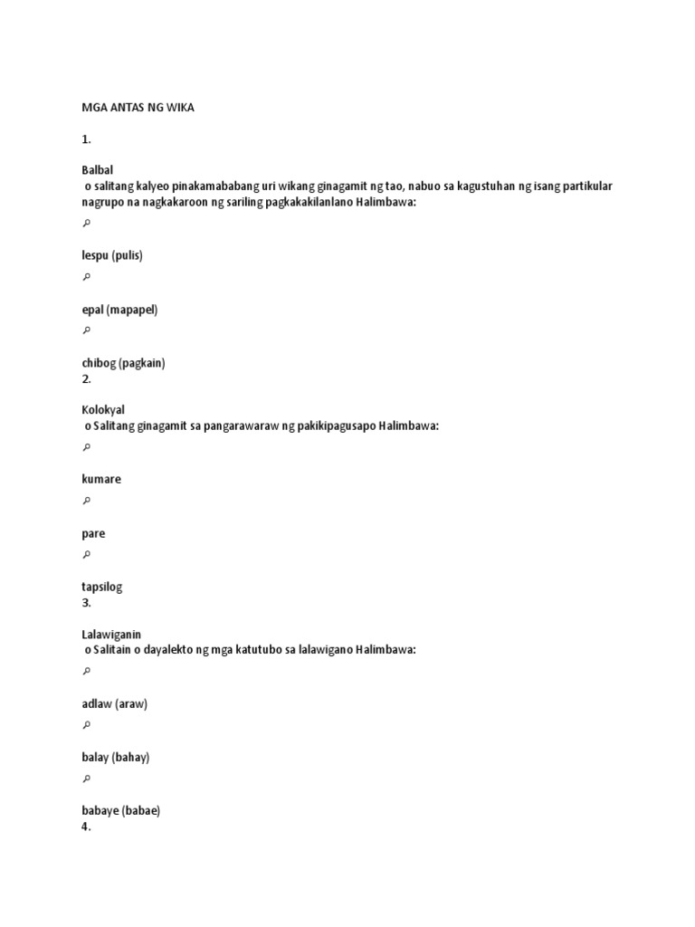 Sa antas ng wika sa Pilipinas naisakategorya ang wikang. Bawat indibidwal ay may istilo sa pamamahayag at pananalita. Kahulugan at Mga Halimbawa ng Wikang Balbal.