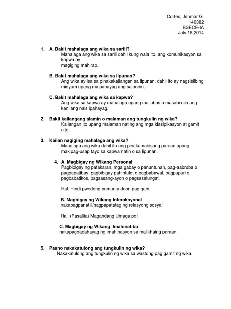 1Maynila 2Cavite 3Bulacan 4Pampanga 5Nueca Ecija. Sa pamamagitan ng wika ang mga ideya ay naisasakatuparan at nagiging posible. Ang wika ay ang pangunahing instrument ng komunikasyon at napakahalaga nito para sa pakikipagtalastasan dahil kung wala nito wala tayong maigagamit na kasangkapan para sa pakikipag-usap sa kapwa nating tao.