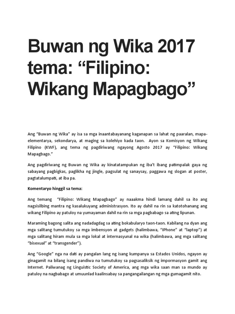 Buwan ng Wika 2017 tema. BUWAN NG WIKA-Sa paksang ito tatalakayin natin ang ibat-ibang halimbawa ng mga tula para sa buwan ng wika. Tula Tungkol sa Magulang 13 Tula Tula Tungkol sa Pag-ibig Sa Pamilihan ng Puso.